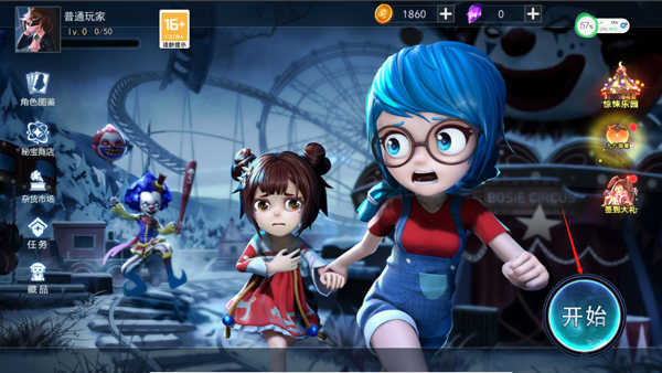 4、接下来便能够进行角色选择,玩家等级越高,可解锁的角色数量越多。在界面右侧还能够添加道具,一切准备就绪后,点击“开始游戏”即可。