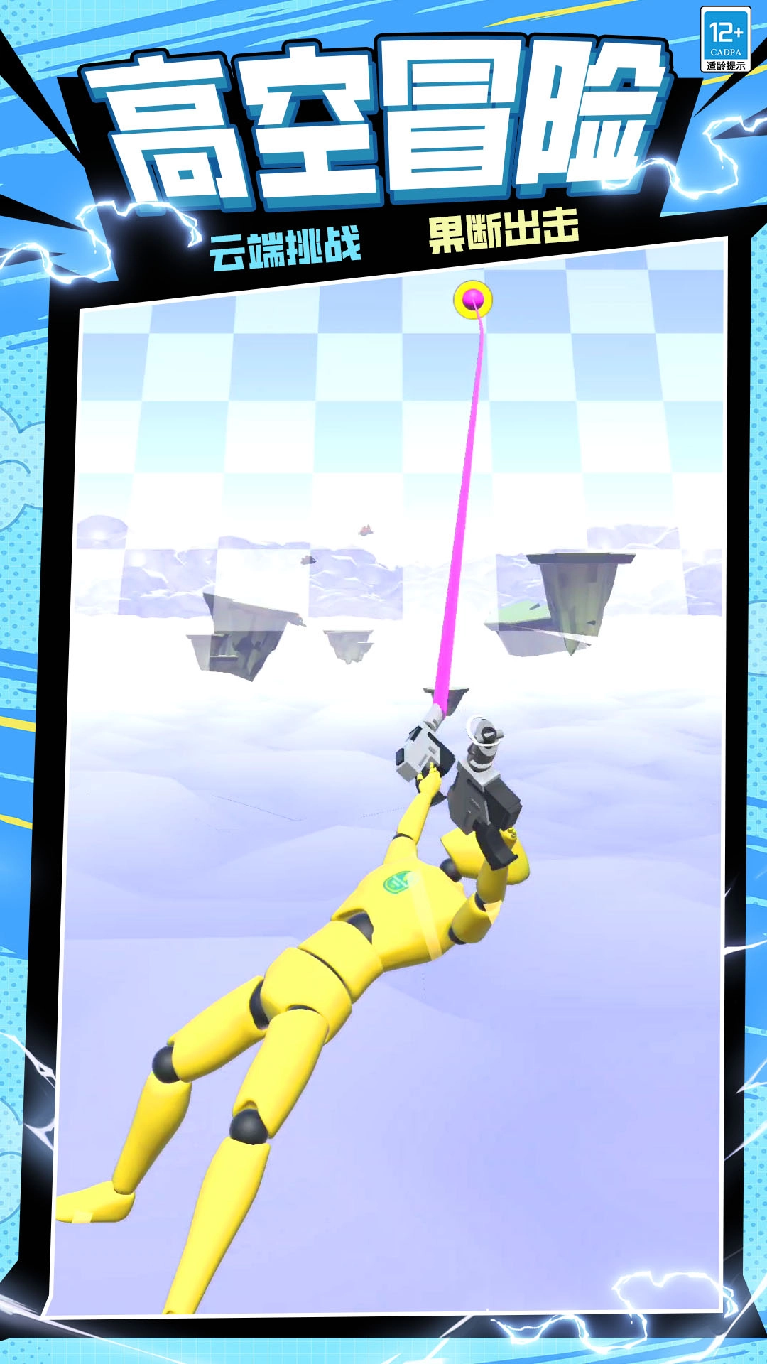 1. 玩家只需点击屏幕,即可直接发射绳索,角色会迅速抵达相应位置,在此过程中,玩家需把控好绳索发射的节奏。
