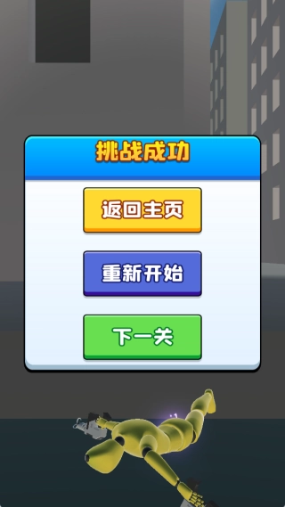 1. 玩家操控火柴人运用飞钩,只需点击屏幕的指定位置,就能发射飞钩,飞钩会自行附着在能够勾连的物体之上。