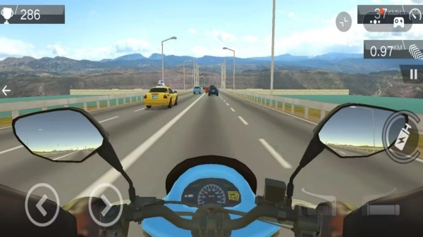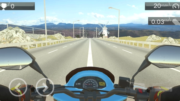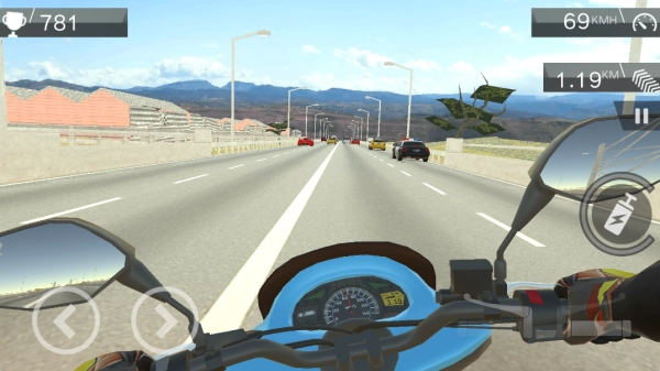 1. 游戏内存在诸多驾驶挑战等待玩家去完成,玩家能够骑着摩托车在道路上风驰电掣,要是完成特技动作,就能获取更多积分。