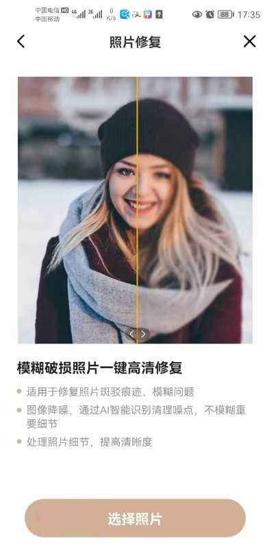 【照片修复】借助AI技术,一键实现对带有划痕破损、模糊不清以及低分辨率等问题的老照片进行高清修复,显著提升照片质感,令照片重焕生机。