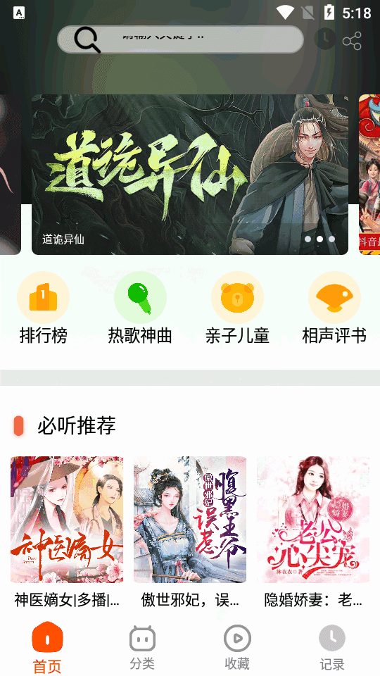 1. 开启软件并进入首页,便能瞧见多种类型的音频资源。