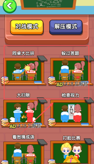 1. 游戏设计中设有躲避老师回头的刺激环节,玩家一旦被老师发现,就会直接被判定为失败,这对玩家的反应速度和观察能力是一种考验。
