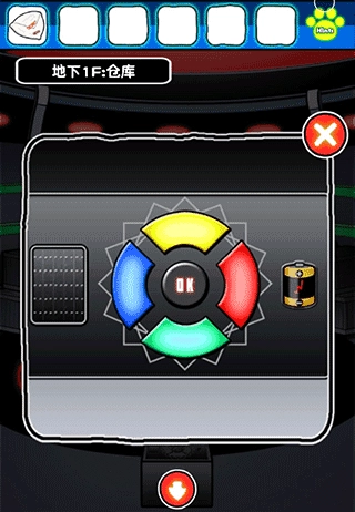 3、将电池放置在最下方的台子上,接着依据地板上的4种颜色进行点亮操作,之后按下按钮,芜湖起飞。