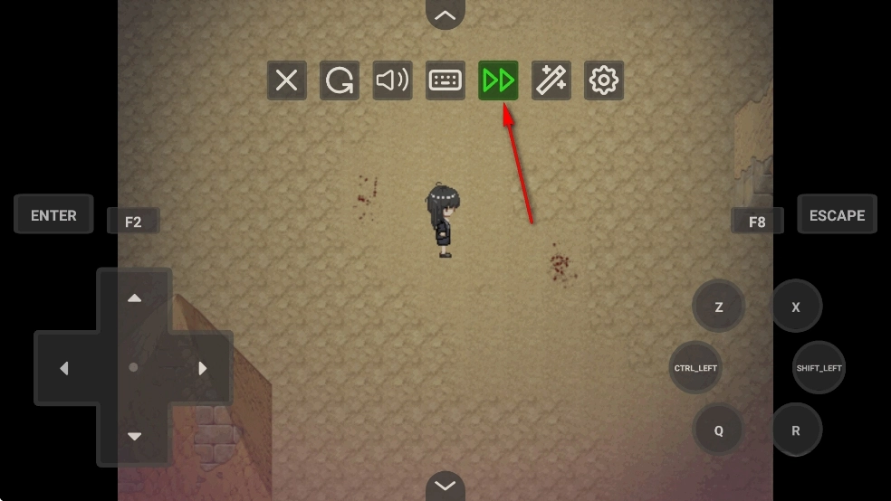 点击如图双箭头按钮可以加快人物速度