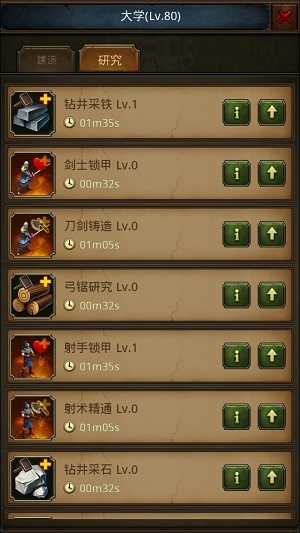 (1)大学建造规则:于城内的空地块上进行建造,此过程会消耗资源,且存在等待时间。若想立刻完成等待,可消耗钻石实现。在升级与建造建筑的等待阶段,会占用1个空间,这里的空间等同于建筑位。当升级所需资源不足时,能够直接用钻石代替资源来执行升级操作。