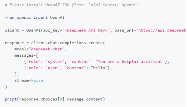 DeepSeek API采用与OpenAI兼容的API格式,只需对配置进行修改,您就能借助OpenAI SDK来访问DeepSeek API ,也可选用与OpenAI API兼容的软件。