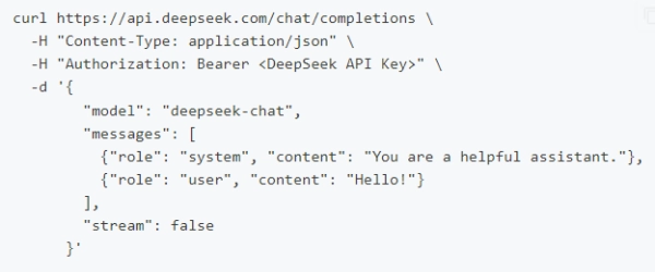 在创建 API key 之后,你可以使用以下样例脚本的来访问 DeepSeek API。样例为非流式输出,您可以将 stream 设置为 true 来使用流式输出。