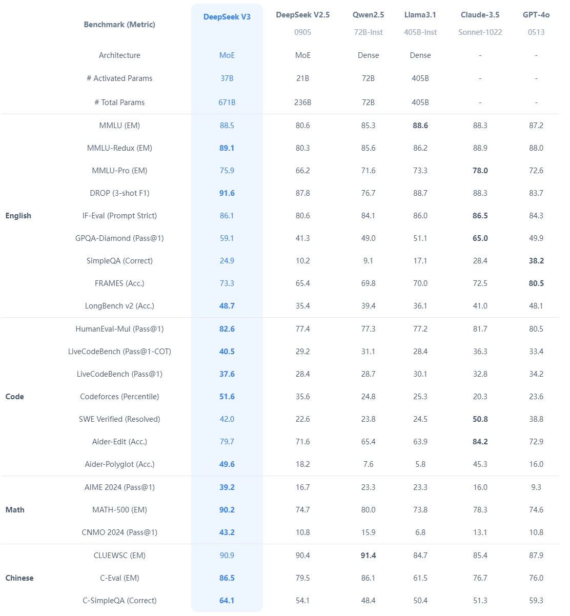在目前大模型主流榜单中,DeepSeek-V3 在开源模型中位列榜首,与世界上最先进的闭源模型不分伯仲。