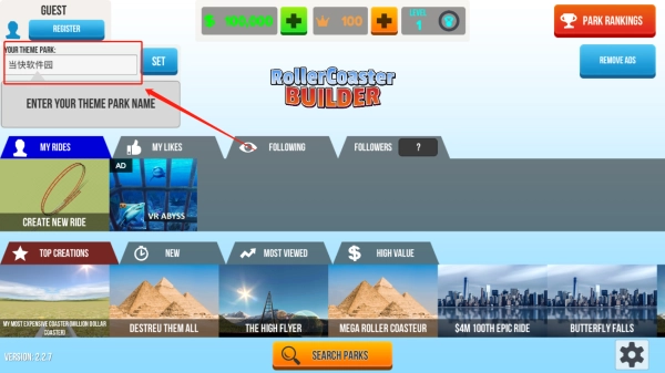 进入游戏后,点击右上角输入并确认你的游乐园名称。