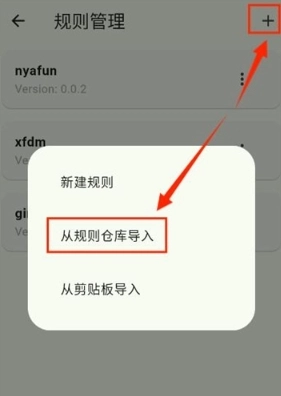 点击界面右上角的加号按钮后,弹出的窗口中既可以导入规则仓库里已有的规则,也能通过新建功能添加自定义的规则内容。
