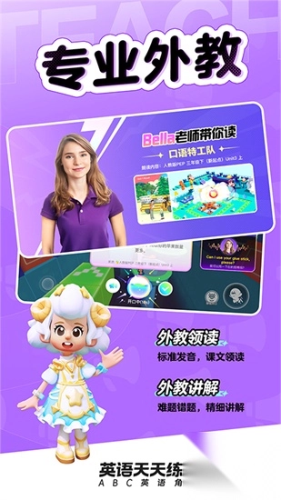 外籍教师引导朗读:每一句英文的开口练习,都在外籍教师的带领下进行,他们用地道的美式发音逐句展示,营造出真实的语言氛围。帮助孩子大胆地开口说英语,摆脱“只会看不会说”的困境!