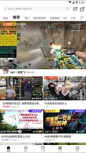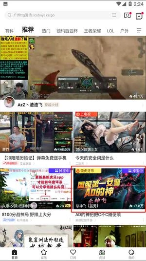 ・全部游戏: LOL、DNF、CF……上百款正在直播的游戏都能观看,直接搜索游戏名称就能找到对应的直播内容