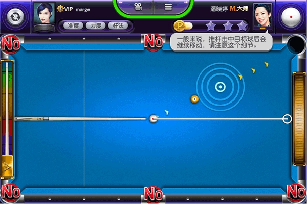 在明确台球风云的击球方向后,拖动能量条再松开,就能完成击球动作。