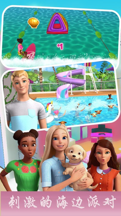哇塞!海滩总算开放啦!潜水、游泳、烧烤、踢球、打排球或者堆沙堡?这些你全都能体验到!就连小狗都能在海滩上尽情撒欢呢!你还可以去冲浪,看看在超有趣的迷你游戏里谁能夺得冲浪冠军的称号。也能在迷你梦幻屋的泳池里纳凉,参加热闹的泳池派对哟!