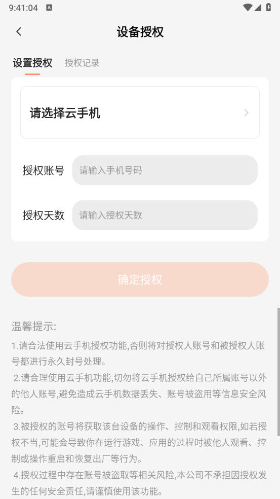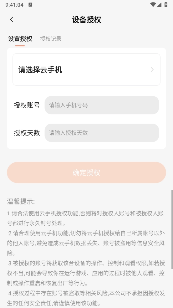 授权方可以通过“我的——设备授权——授权记录”来取消云手机的授权功能。