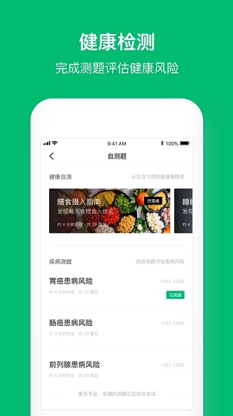 用户完成健康自测题后,系统会结合大数据分析,由专家团队为其定制科学的饮食生活习惯建议与合理的药物选择方案。同时,用户还能实时关注家人的健康动态,为自己在乎的人增添一份贴心守护。
