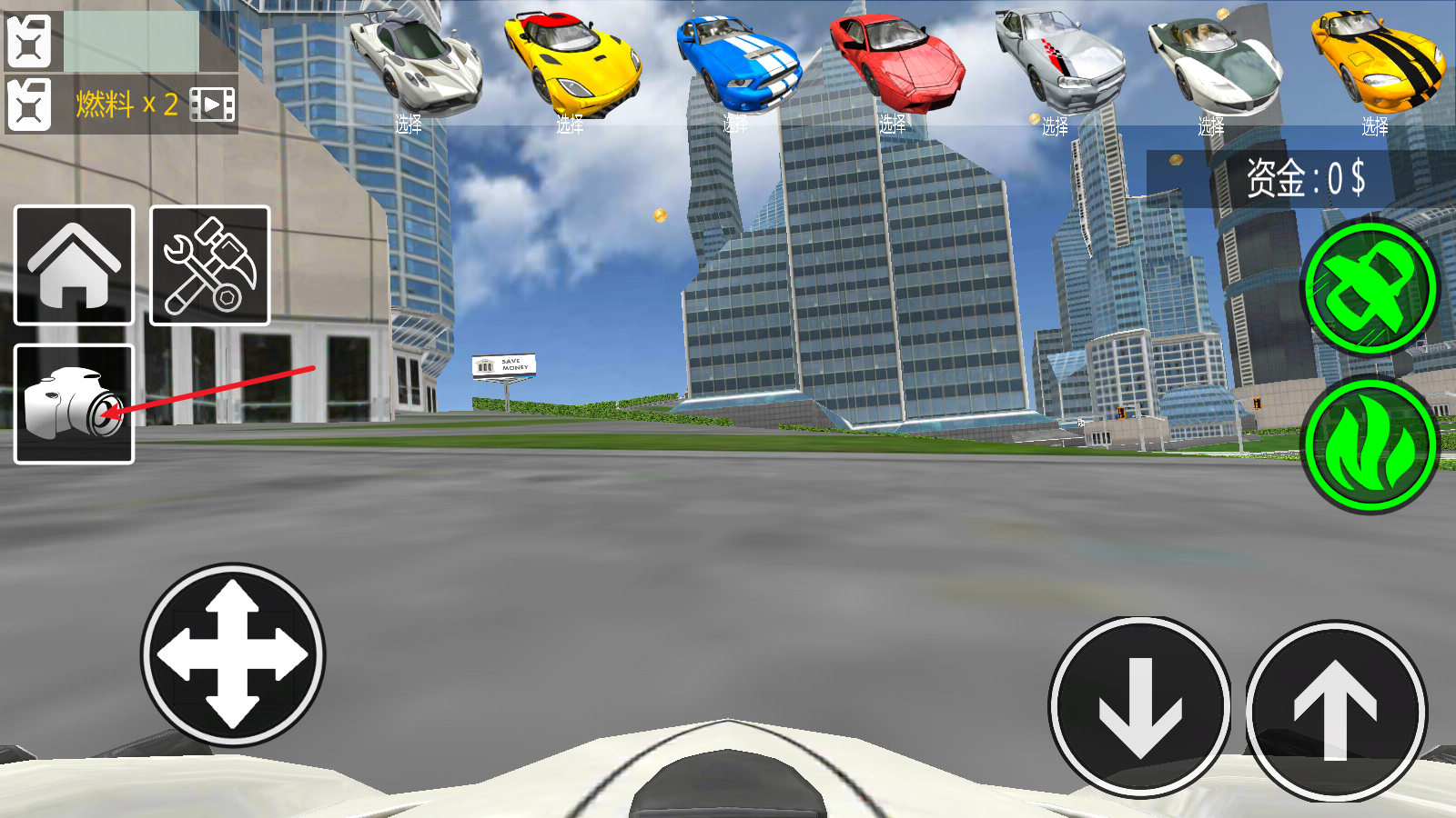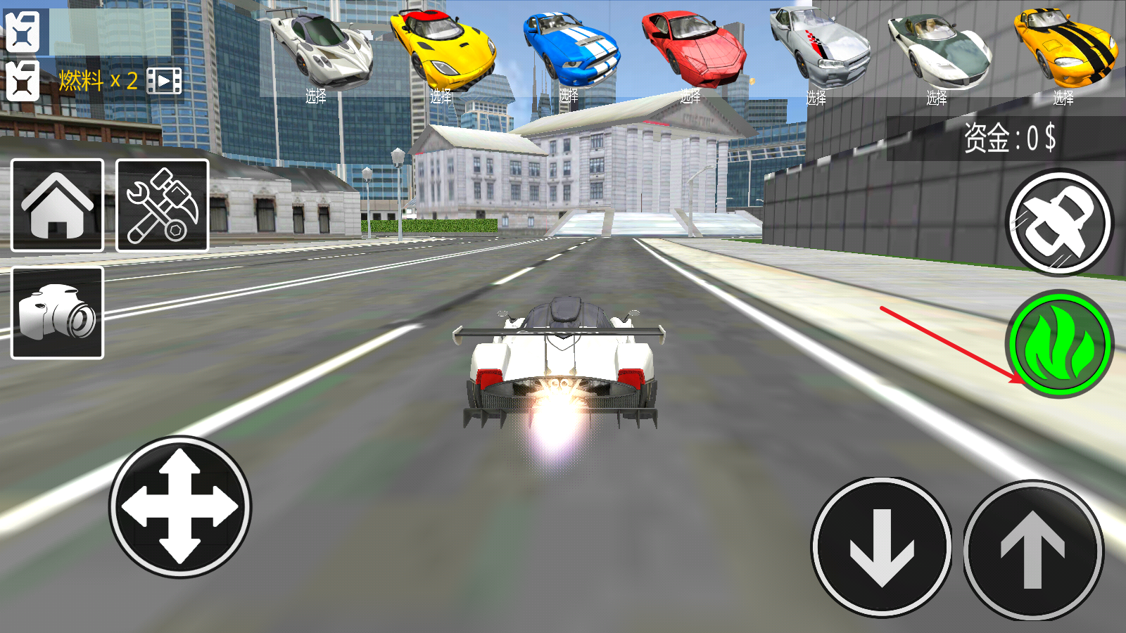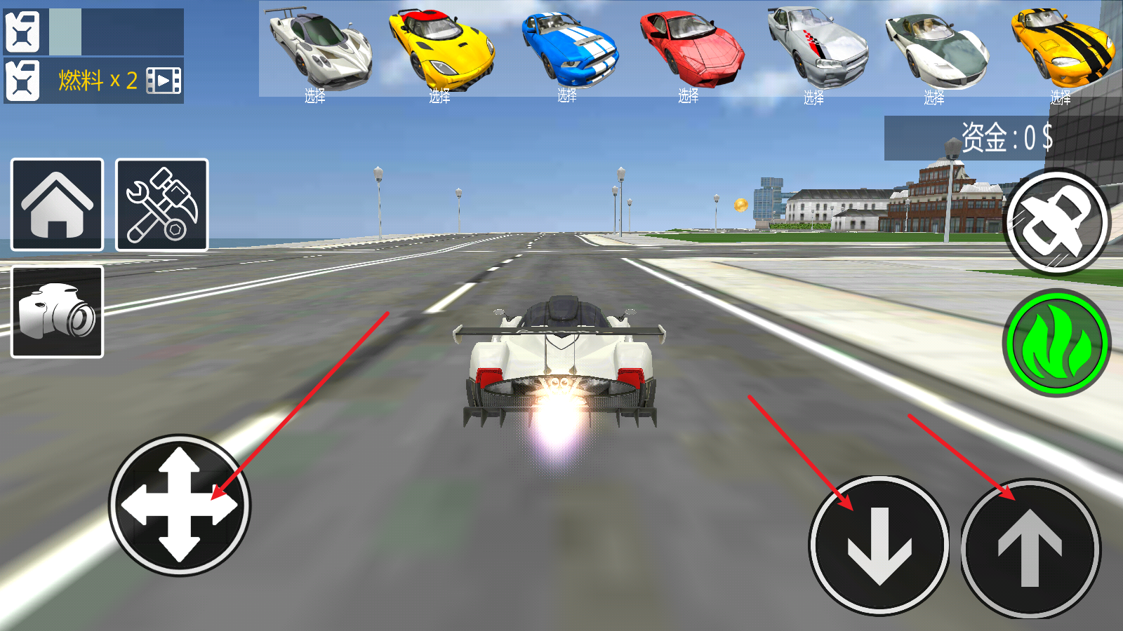 进入游戏后,右侧的箭头分别对应后退和前进功能,左侧的摇杆则用于控制转向。