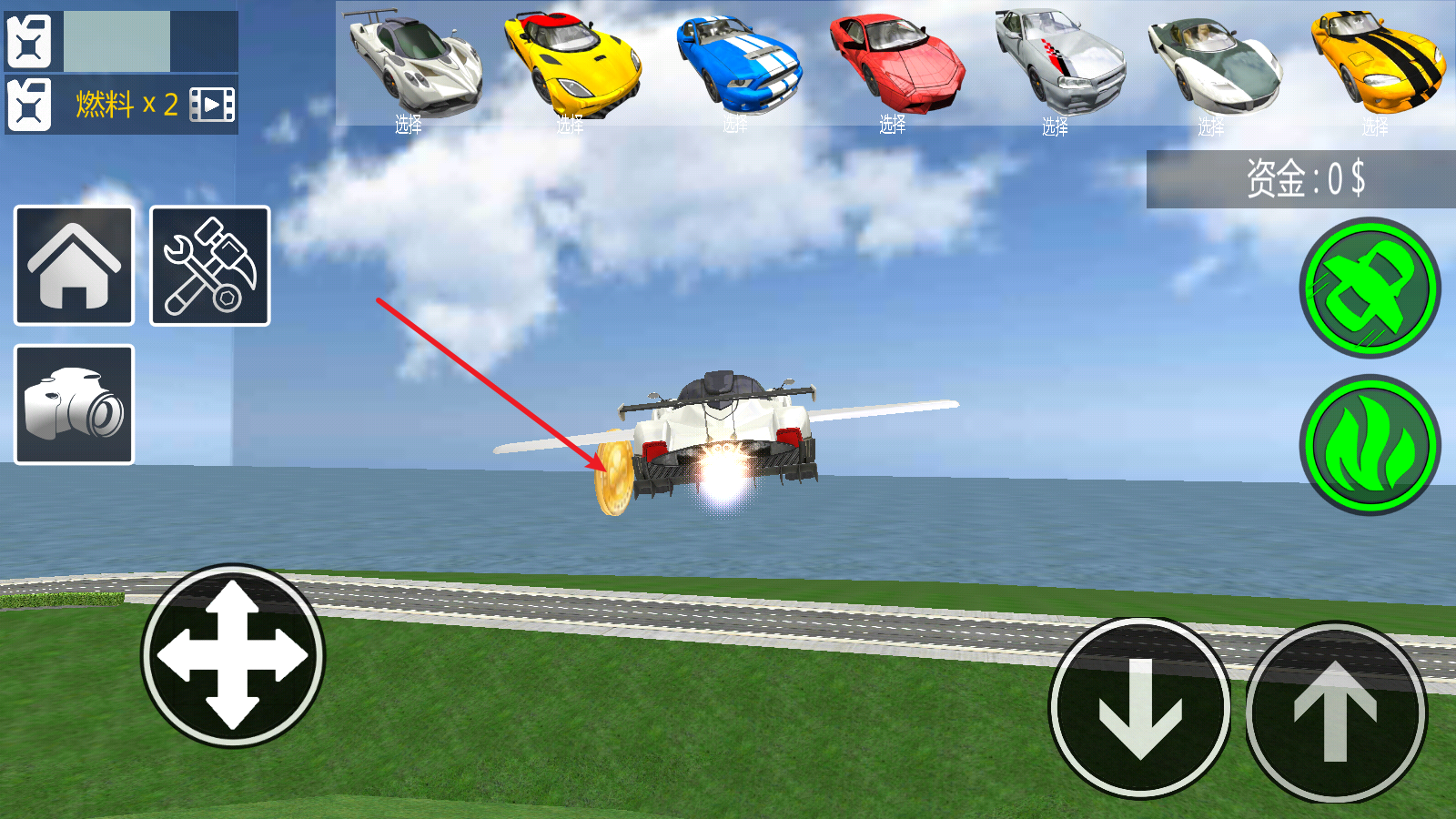 点击右侧机翼就能展开,之后汽车便能实现飞行,借助摇杆即可操控高度与方向。
