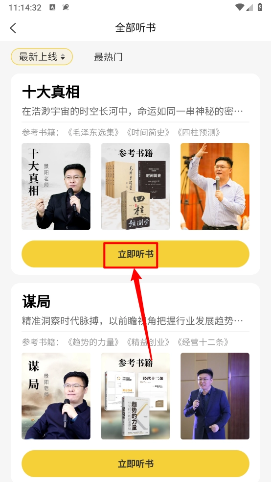 进入后选择喜欢听书的书籍,点击"立即听书"。