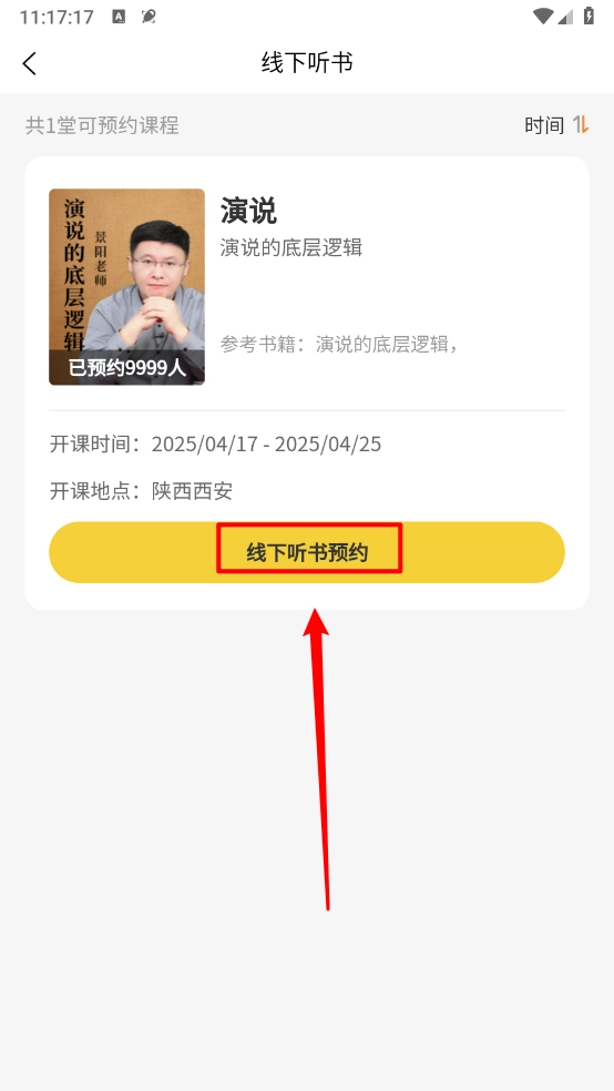 你也可以点击“线下听书”按钮进入相关页面,进行线下听书的预约操作。