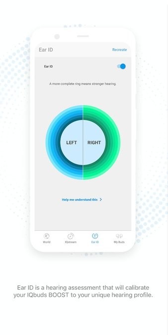 Ear ID会借助听觉行业的标准算法,自动为您的IQbuds提供个性化设置。