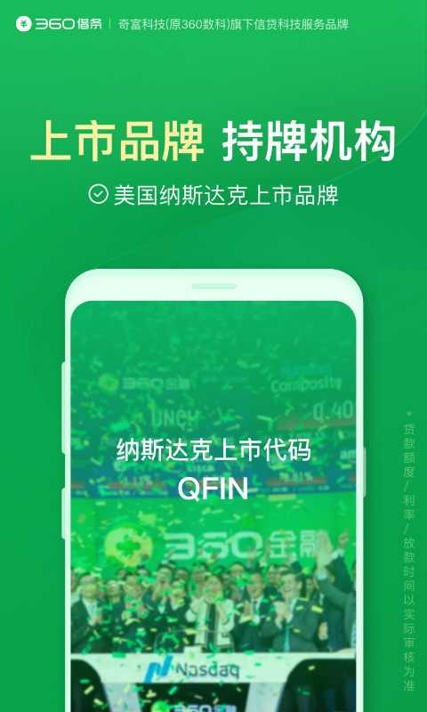 360借条隶属于奇富科技,是其旗下的信贷科技服务品牌。奇富科技的前身为360数科,2023年2月,360数科正式更名为奇富科技。“奇富”二字承载着用前沿科技为社会创造财富的理念。作为中国领先的人工智能驱动型信贷科技服务平台,奇富科技始终坚守“始于安全 恒于科技”的初心,依托智能服务、人工智能研究与应用以及安全科技等核心优势,为金融机构赋能,助力其提升质效,推动普惠金融迈向高质量发展,让更多人能够享受到安全且便捷的金融科技服务,为实现共同富裕贡献力量。