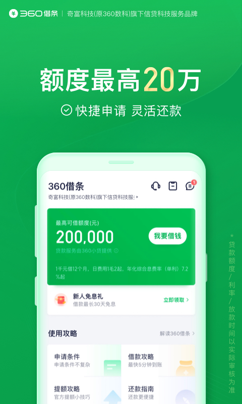 360奇富借条(原360借条,2025年更名,现仍可使用)是奇富科技旗下持牌信贷科技服务品牌,超2.5亿用户选择。作为一款借贷应用,它具备利率低、额度大、放款快、操作简单的特点,还拥有先进的网络安全技术,支持直接线上申请,安卓版使用起来十分方便。