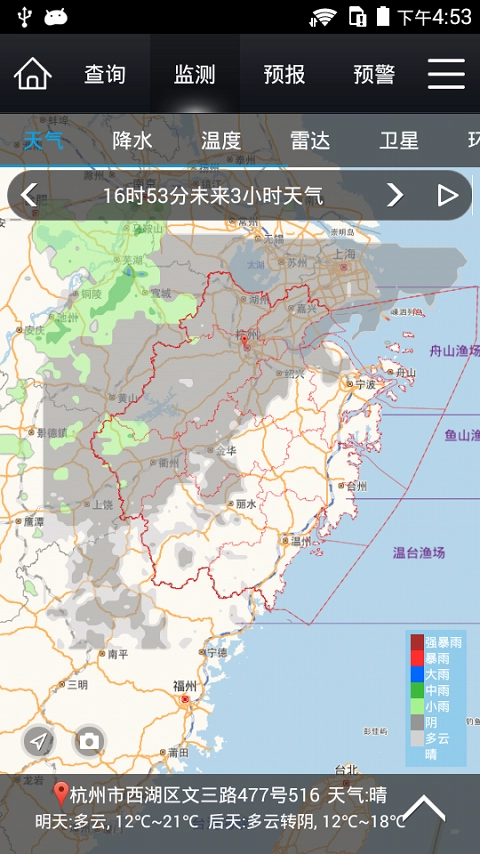 天气监测功能能够对全国各区域的天气状况进行监测,并在地图上直观呈现这些信息。