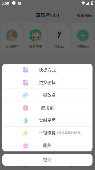 应用多开无限制:草莓熊的应用支持范围远超微信,能帮你轻松管理各类应用。