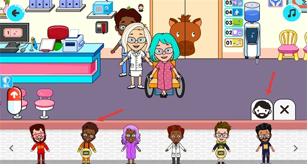 在游戏中,你将不断经历场景的切换,与不同角色进行互动,按照治病的流程一步步操作,还能解锁像手术室这样的新区域,从而完整体验医院经营和救治病人的玩法。