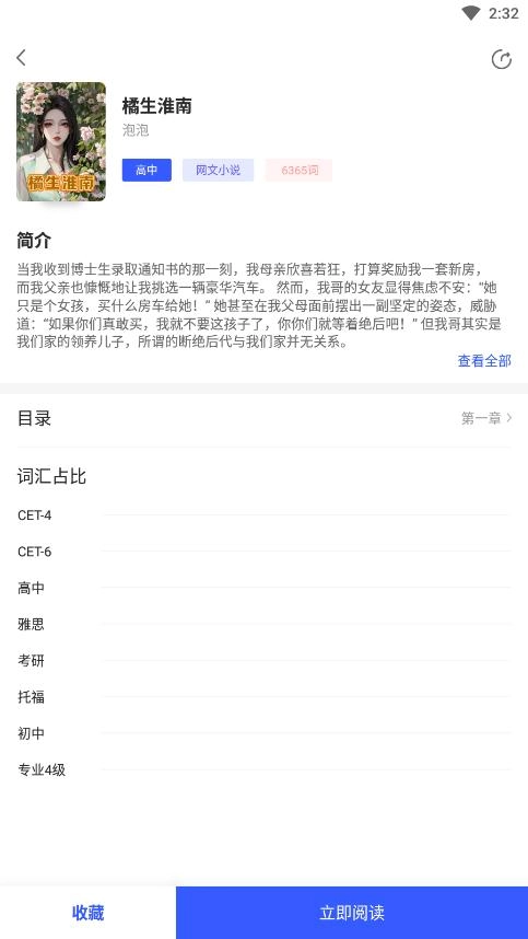 中英双语可自由切换,为您提供精准度最高的内容翻译服务;阅读时遇到不懂的地方,只需轻点一下就能查看译文。