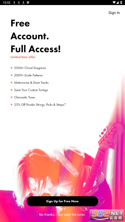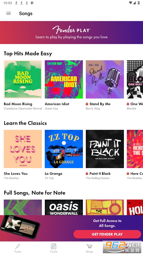 还在找不只是标准功能的吉他调音器吗?现在注册,就能在限定时间内免费解锁Tune Plus的全部内容——这款移动应用里超丰富的免费吉他资源包!全程不用绑定信用卡。不管是交互式的吉他和弦与音阶工具、可自定义的鼓点节奏,还是更精准的高级调音功能、节拍器等实用工具,都能帮你让练琴效果更上一层楼。你只需要下载Fender Tune应用,再拿起你的乐器就够啦。