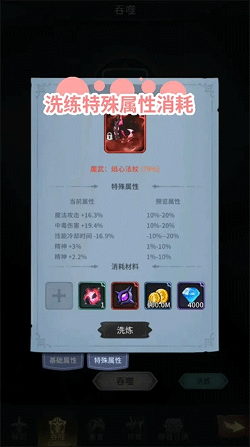 注意:切勿先进行吞噬操作再洗练特殊属性,一旦完成吞噬,后续洗练出的属性仅为数值层面的调整,不会涉及属性类型的改变。