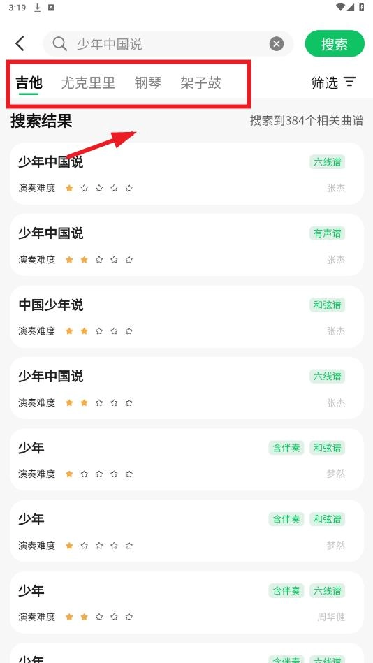 类型有和弦谱、有声谱、图片谱,