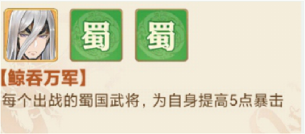 蜀国堪称纯粹的增益流派,刘备与诸葛亮便是增益效果的核心保障。凭借开局的被动技能以及释放回合技能,能够迅速提升队伍所携带的增益效果数量。