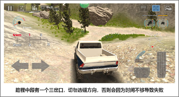 跨越障碍物时,车辆底盘容易被石头磕碰。应对这种情况,最佳做法是在通过复杂地形时挂入一挡,以低速行驶;同时,调整视角至能清晰看到车辆底盘的角度,随时根据路况调整档位和车速,从而避免底盘磕碰导致车辆损坏。此外,本关卡的时间设置较为充裕,司机们可以放心驾驶车辆~
