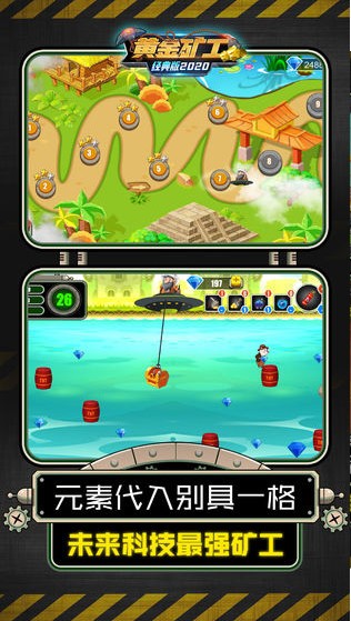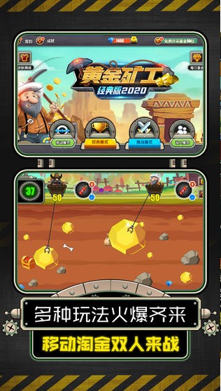 黄金矿工经典版2020修改版是一款主打休闲玩法的挖矿题材游戏。在挑战过程中,玩家能轻松体验到经典挑战模式、双人模式、移动模式等多种玩法各异的模式,还可灵活运用炸弹、铁镐等道具武器助力完成挑战。游戏玩法十分精彩,玩家只需找准抓钩轨迹,就能抓取下方的钻石、黄金、宝箱等物品。