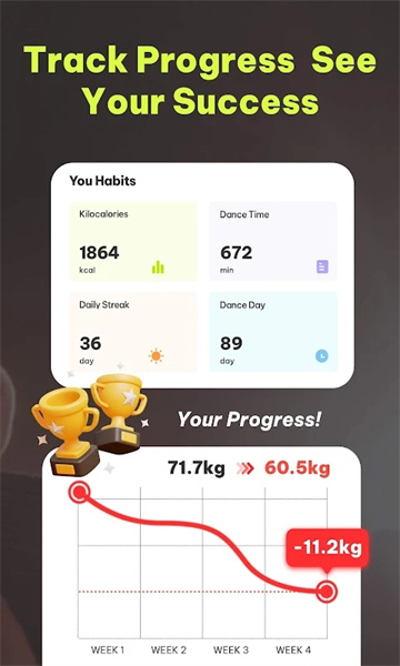 自定义舞蹈规划:用户能够在应用里制定专属的舞蹈计划,还能设置提醒功能,以此协助他们更有效地管理和记录舞蹈训练的进展情况。
