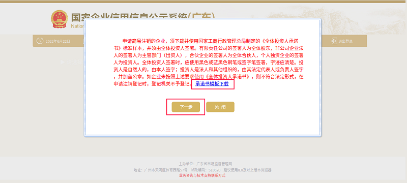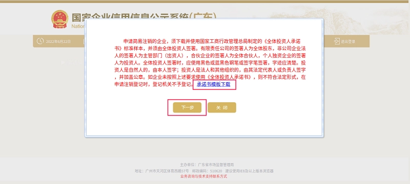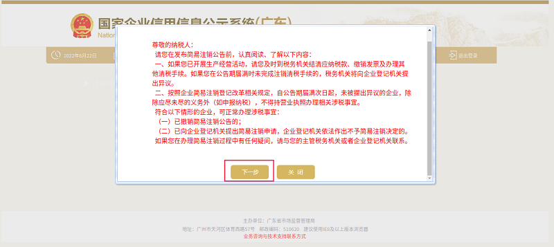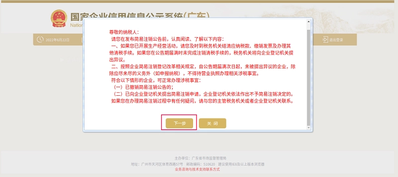 联络员注册]选项二、填写并公示市场主体简易注销信息