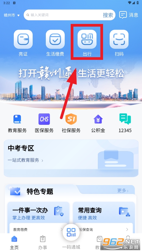 打开赣州通,点击首页上的“