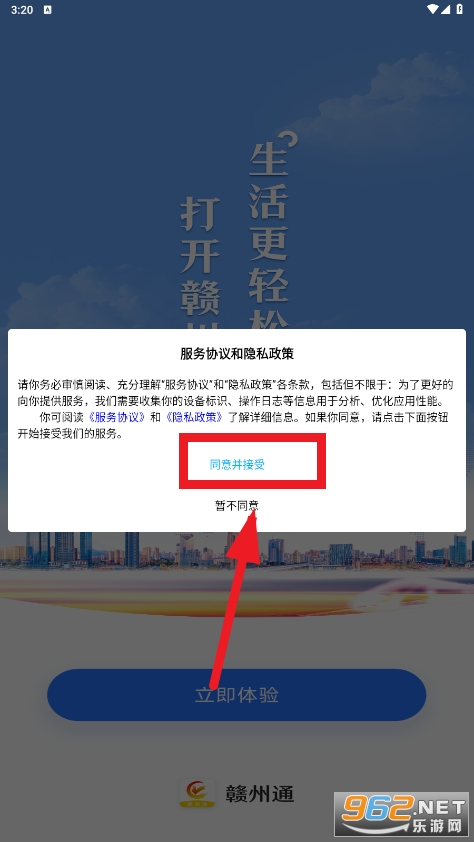 打开软件后,点击同意隐私协议与用户协议。