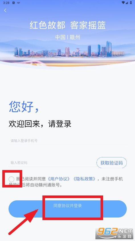 勾选用户协议,输入手机号验证码,登录平台