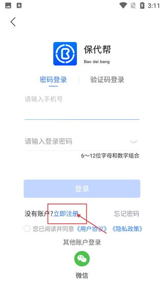 在登录界面,可选择【密码登录】或者【验证码登录】的方式;要是还没有注册账号,点击【立即注册】就能开启注册流程,此外也支持微信等第三方平台的登录方式。