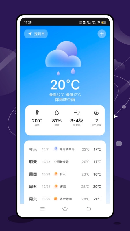同步展示你所关注城市天气,非常详细,秒速对比。