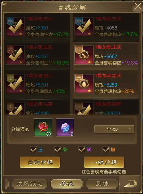 龙魂与帝王装备的机制相近,都是依据星级来划分阶数,星级越高,其基础属性的上限也就相应越高!