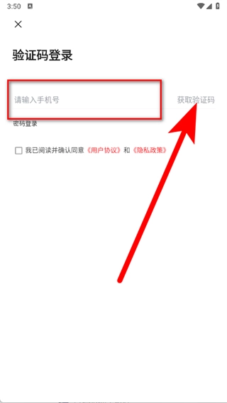 在验证码登录页面输入自己的手机号,然后点击获取验证码的按钮。