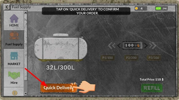调整好油的用量后,点击QuickDelivery按钮来添加油。