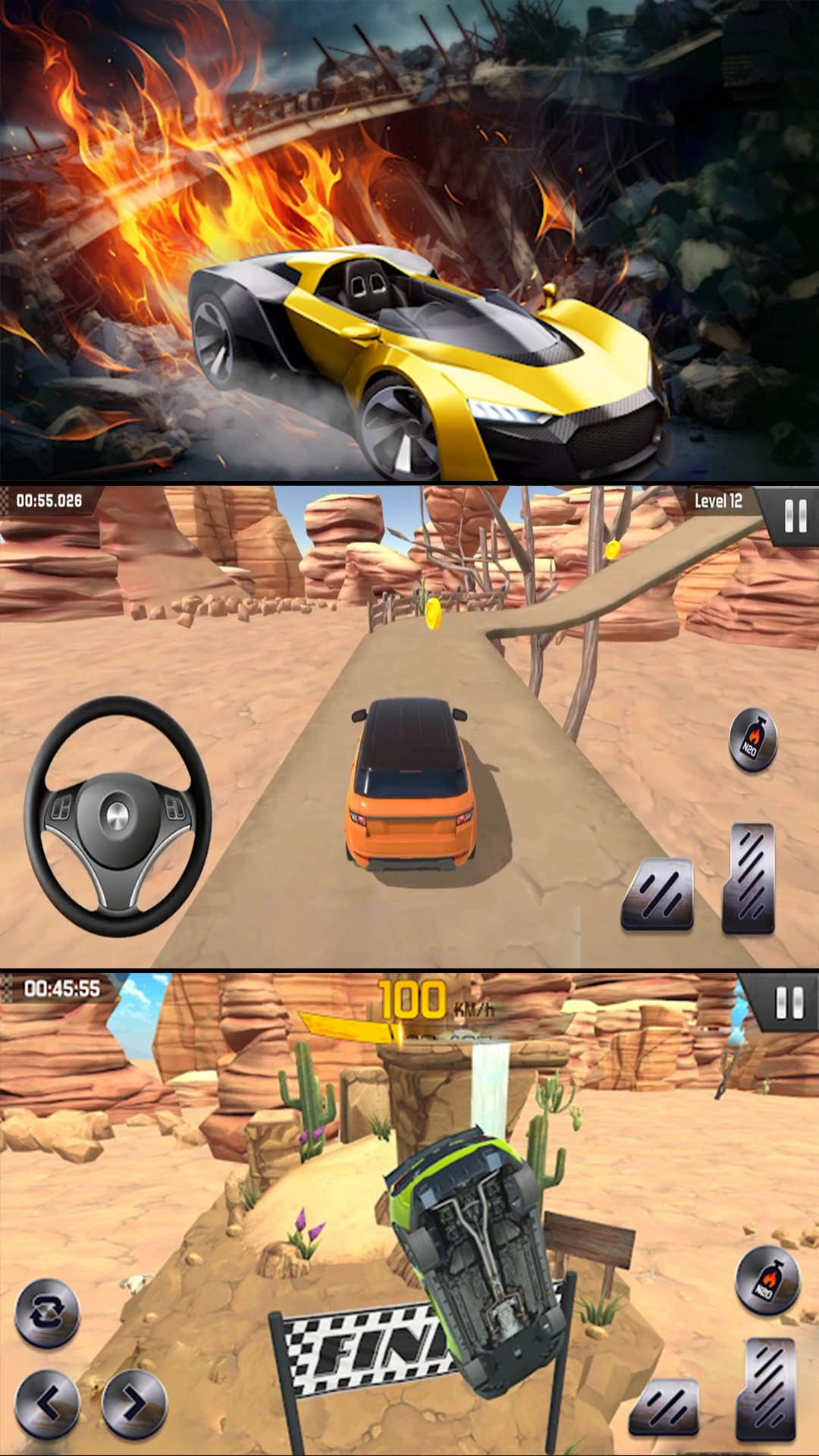 我们的目标是精确把控车辆的速度与行驶方向,顺利越过途中的各种障碍,平稳地到达终点位置,从而获得该层级对应的奖励。