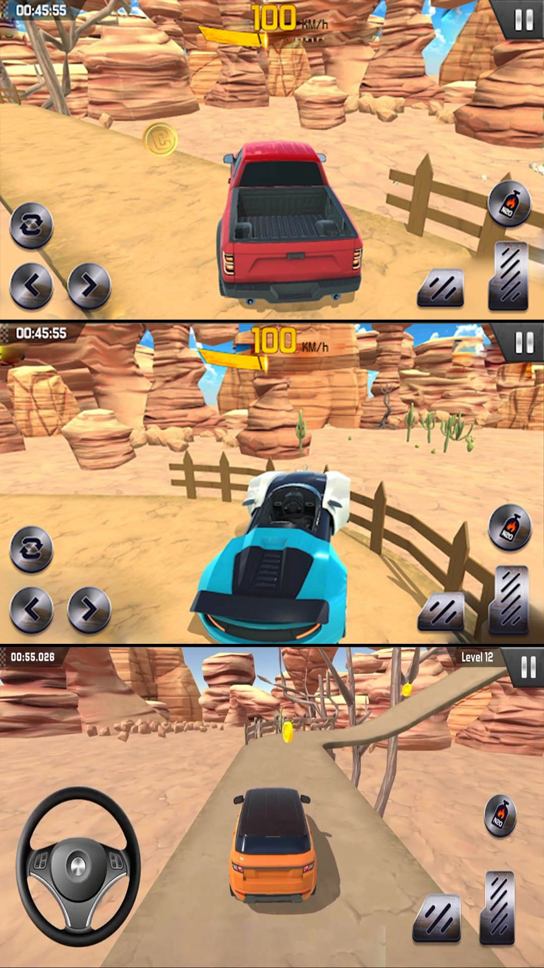 这里有多款不同型号的汽车,你可以用金币解锁它们。那就多闯些关卡攒金币来购买吧。